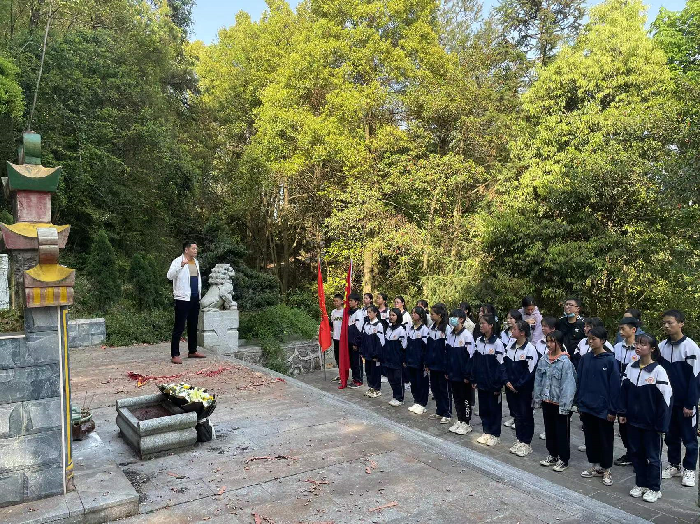 本网讯 4月8日下午3点,平口镇中学开展党建带团建“扣好人生第一粒扣子”公益活动,该校党员教师、优秀团员代表三十余人前往福寿山景区,祭奠“全国十大扶贫状元”孟石源同志。 党支部书记、校长蒋苏会率师生一行人整装待发,顶着炎炎烈日徒步前行,汗水浸湿了衣服、脚板磨出了血泡,党员和青少年团员亦不辞辛苦,沿蜿蜒大道拾级而上。团员们走进景区、亲近自然,仰望层层叠叠的碧绿春色,俯首辨认草本植物,真正寓教于乐,向山间、田头学知识。党支部组织委员彭忠德向团员们宣讲孟石源的优秀事迹,抬手告知满山的梯田路坎,便是其生前带领村民徒手修筑的,用肩挑、用箩筐担,打通了致富之路。 到达孟石源同志公墓前,师生严肃以待、整理着装,肃穆步入祭台。彭忠德组织学生敬献鲜花,师生向英模孟石源同志三鞠躬、静默一分钟,绕公墓一圈、瞻仰英模。随后,党员教师李小平向师生讲述了孟石源生前诸多惊人事迹、致富创业的金点子,获得了“全国劳动模范”“全国十大扶贫状元”等殊荣。 走出校园、了解身边英模人物,师生感慨万千、感触良多。团员代表刘师如表示将更加努力学习,致敬英模、学习英烈,虽不一定像孟石源同志那般轰轰烈烈、惊天动地,但将努力考取师范生,选择教师职业,为新时代培养更多的有用之才。(通讯员 彭忠德)