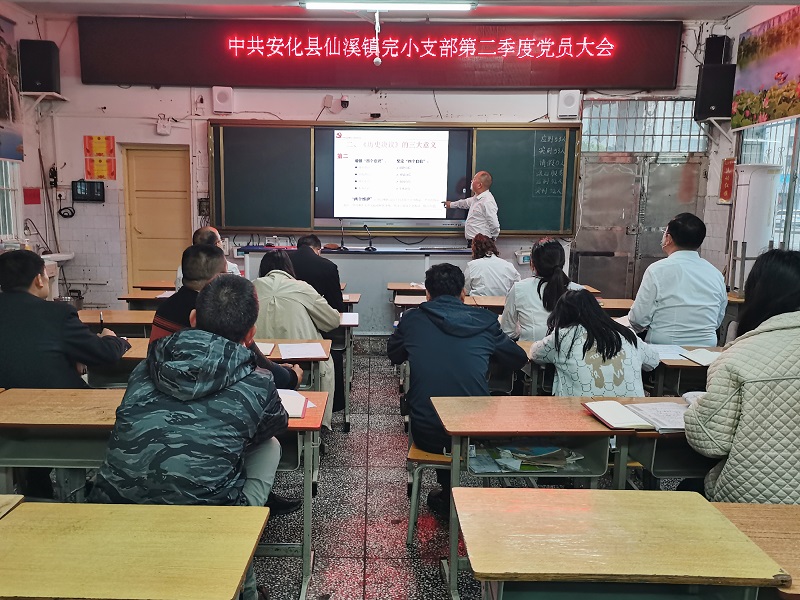 本网讯 4月13日下午,仙溪镇完小党支部组织全体党员召开了2022年第二季度党员大会,会议由组织委员李安健主持。 会议在学校多媒体教室召开,首先由组织委员李安健带领大家观看党员教育视频《中国抗疫中的“人民至上”》与《周总理的浪漫家书》,大家感受到中国始终将保障人民生命健康视为重中之重的价值理念,体会到领袖为国为民、鞠躬尽瘁的人生境界。随后,党支部副书记吴子春组织党员同志学习贯彻习近平总书记在疫情防控中的重要讲话精神,提出党员要领会“人民至上,生命至上”的使命担当,以身作则。接着周艳红组织大家学习《关于加强新时代关心下一代工作委员会的意见》等相关文件,倡导大家为培养德智体美劳全面发展的社会主义建设者和接班人贡献力量。 会上,组织委员李安健通报第一季度党员积分与党员示范岗、党员示范课的相关事项,做了开展“学习强国“主题征文与知识抢答赛的工作安排。党支部书记杨峥红给全体党员上党课,强调一个党员就是一面旗帜,党员同志要始终谦虚谨慎、不骄不躁、艰苦奋斗,在疫情防控中发挥带头引领作用,营造安全的校园环境。(通讯员:姚佳宁)