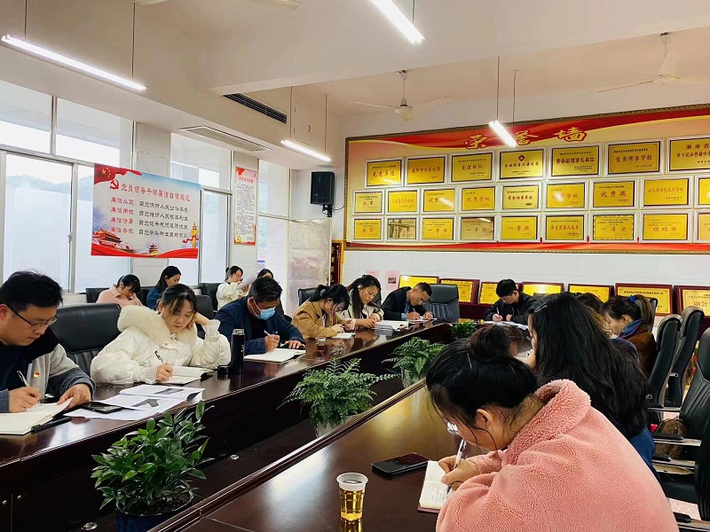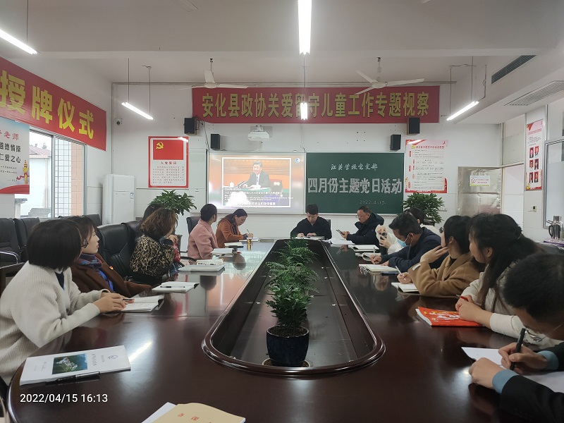 本网讯 4月15日下午4:05,江英学校党支部组织开展四月份主题党日活动。本次活动的主要内容是:组织政治学习暨第二季度支书讲党课。该党支部22名党员、3名入党积极分子参加学习活动;县委教育工委“两新”组织专职党建指导员黄翠同志应邀参加本次活动。 在活动中,该校党建专干王光明组织收看了《周总理的浪漫家书》《中国抗疫中的“人民至上”》等党员教育微视频;党支部副书记刘艳组织学习了中共中央政治局常务委员会3月17 日会议上习近平总书记关于从严做好疫情防控工作的重要讲话精神及中共中央办公厅、国务院办公厅《关于加强新时代关心下一代工作委员会工作的意见》,学习了益阳市新冠肺炎疫情防控指挥部综合组关于印发《疫情防控社区排查须知》等4 个须知的通知。党支部书记谢豪介绍了江英党支部集体学习“1+X”与“2+X”的两种形式,并作了《认真学习贯彻党的十九届六中全会精神》——第二季度党课讲座。谢豪概括了宣讲了六中全会的主要精神,联系单位实际阐述了在立足本职岗位中如何运用“坚持人民至上”这一历史经验。 在学习活动中,党员教师畅所欲言,分享学习心得,刘圣彦、李责安等同志纷纷表示党员教师要发挥先锋模范作用,立足岗位勇担当,精准防控敢作为。会上,党支部还就发展党员工作有关积极分子的培养,发展对象推优,开展党建实践活动,争创省市党建工作示范点等进行了商讨与部署。黄翠对本次活动作了简要点评。(通讯员王光明、刘艳)