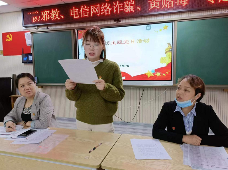 本网讯 5月17日晚上,烟溪镇完小党支部召开了以“筑牢安全防线 共建和谐社会”为主题的5月党日活动。 全体党员观看了红色教育视频和反邪教、“黄赌毒”教育视频,中心学校副校长丑智萍、党支部书记刘芬分别带领全体党员深入学习并领会总书记习近平《关于安全生产重要论述和指示精神》《党员参与全市既有房屋安全隐患大排查大整治倡议书》。并由党委委员彭向阳上了一堂如何同邪教、电信网络诈骗、“黄赌毒”等不法行为作斗争的专题党课。通过列举详尽生动的案例,深刻剖析了邪教的罪恶本质、个人信息泄露的原因,揭露了犯罪分子的常见作案手段,并传授了防范对策,为党员上了一堂生动详实的党课。(通讯员:彭向阳)