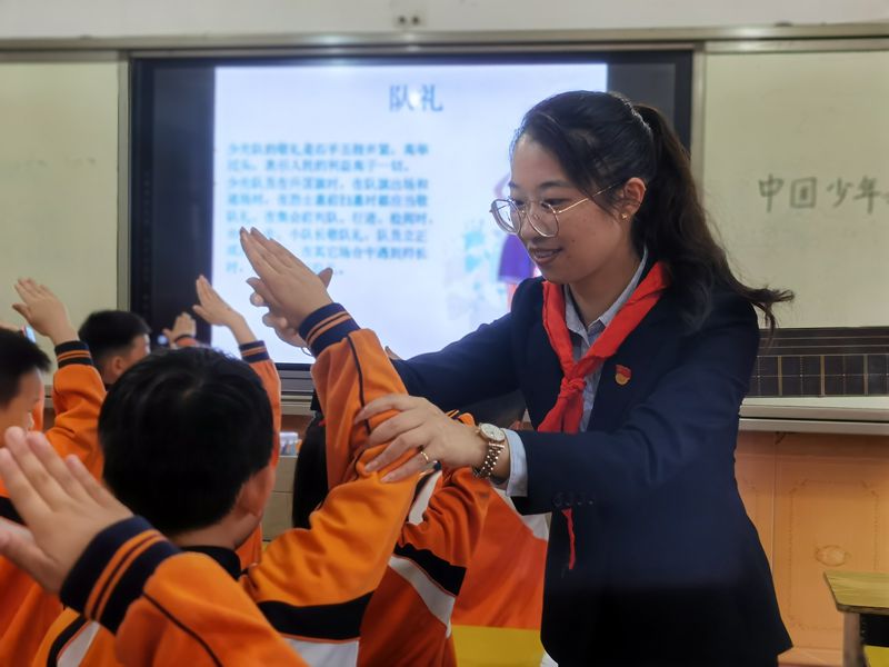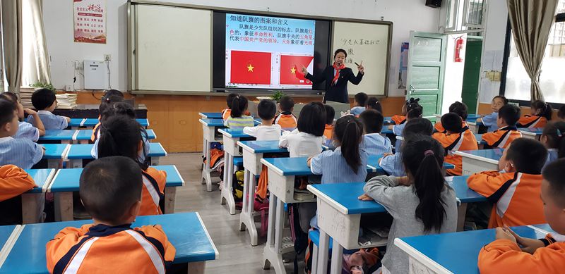 本网讯 5月26日,正值国际六一儿童节来临之际,闵家完小党支部联合学校德育处、大队部开展“党员上队课”主题活动,闵家完小10名党员教师为一至三年级的即将加入中国少年先锋队的新队员们进行了队前知识培训。 10位党员教师戴上鲜艳的红领巾,微笑着走进每一个教室,声情并茂地从队徽、队旗、队礼以及红领巾的佩戴等方面进行了详细的讲解。孩子们一个个都听得非常认真入神,她们的眼神中透露着对中国少年先锋队这个组织的无限渴望和无比崇敬。 小小红心心向党,红色基因代代传。通过“党员教师上队课”,少先队员们更深入地了解了中国共产党领导下的中国少年先锋队这一组织,从党员的口述中将红色基因代代传承下去。相信在党的引领下,会有更多闵家完小的“红领巾”听党话,跟党走,爱祖国,爱人民,爱劳动,爱科学,努力成长为担当民族复兴大任的时代新人,做共产主义事业的接班人。(通讯员:吴明珠)