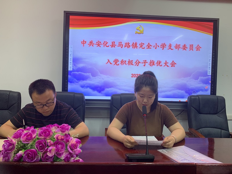 本网讯 5月30日,马路镇完小党支部开展5月份主题党日活动暨入党积极分子推优大会。 活动由支部书记熊卫军为党员、团员、入党积极分子等40岁以下教师上了一堂主题为《新时代彰显新担当,高站位成就高自我》的党课,主要从六个方面给青年教师指出了学习努力方向。 集中观看了《习近平的读书故事》《“我要找到你,喊出你的名字”》微视频;党支部委员唐敏忠同志组织学习《益阳市关于组织基层党组织和广大党员干部积极参与全市既有房屋安全隐患大排查大整治的倡议书》;邓瑶同志组织学习反邪教,防电信诈骗、预防毒品的知识并签署“坚决同邪教迷信、‘黄赌毒’、电信网络诈骗等不法行为作斗争”承诺书,发动党员、入党积极分子主动揭发、抵制邪教迷信、黄赌毒、电信网络诈骗等不法行为,为之做坚决斗争。 最后开展了入党积极分子推优大会,听取入党申请人的申请报告,党员代表对7位入党申请人进行评价意见,并进行无记名民主推荐。 熊卫军对入党申请人提出了殷切希望,希望其严格要求自己,早日加入共产党。(通讯员 王美丽)
