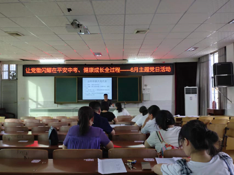 本网讯 6月15日17点半,平口镇中学在五楼多媒体教室举行6月主题党日活动,结合学校中心工作,确定本次活动主题是让党徽闪耀在平安中考、健康成长全过程。 党支部组织委员彭忠德组织集中学习《关于防范非法集资、电信诈骗的风险提示》《防范和处置非法集资条例》等文件精神,自觉做到知晓七类形式、明辨四种手段、牢记“五不一安装”等简要防范口诀,避免不必要的财产损失,还组织签订了《不参与非法集资、电信诈骗承诺书》,借此契机向党员宣讲了瞿海等四位二十大党代表基本信息,保障了党员知情权与参与权。随后,纪检委员李秋庭组织学习益阳市委《关于在预防未成年人溺水工作中充分发挥党组织和党员作用的通知》,号召党组织要扛牢责任、主动担当、彰显作为,领导干部要守土有责、守土担责、守土尽责,广大党员要以身作则、带头示范、勇挑重担,落实防溺水教育“十个一”工程,让“七不两会”入脑入心,组织溺水现场紧急救援演练,提高师生防溺水自救能力,还部署了假期党员防溺水巡河工作。 最后,支部书记蒋苏会作总结讲话,号召时刻自觉彰显党员先锋作用,结合考点建设之契机,安排了考前志愿活动。 会上,还组织观看了红色视频、缴纳了党费。(通讯员 彭忠德)