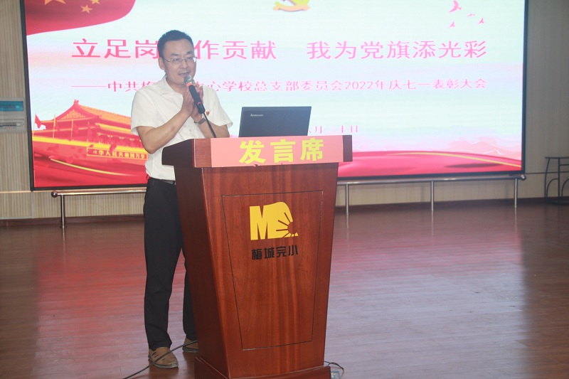 本网讯 6月30日晚上,中共梅城镇中心学校总支部委员会举行庆祝中国共产党成立101周年暨“七一”表彰大会。大会表彰一批先进基层党组织、优秀党员、优秀党务工作者,开展优秀党员先进事迹宣讲。动员各校基层党组织和党员干部教师要立足岗位作贡献,时刻为党旗添光彩,不忘初心、砥砺前行,在教育路上贡献青春力量,以实际行动迎接党的二十大胜利召开。全镇149名党员教师参会。 大会在全体党员的庄严宣誓中拉开帷幕,中心校党总支书记贺荻为熊咸丰等5位老党员颁发“光荣在党50年”纪念章,授予中共梅城镇中学支部委员会、中共梅城镇完小支部委员会“先进基层党组织”荣誉称号。隆重表彰蒋令等23名优秀共产党员,蒋志球、熊乐2名优秀党务工作者。来自镇中学、芙蓉学校的吴敏、龚奕等党员教师,讲述了自己在岗位中的感人故事,展现了梅城教育人“创”的劲头、“干”的作风,充分彰显出一名党员的真实风采。东华完小、梅城镇完小的党务负责人王团、王喜安同志做党建经验分享。 大会总结中,贺荻寄语受表彰同志珍惜荣誉、再接再厉,立足岗位再建新功;全体党员教师要学习先进,争当先进,在政治坚定、对党忠诚上,在履职尽责、担当作为上走在前、作表率。他强调说,党员教师要牢固树立底线思维,不触教育红线;以梅城教育大局为己任,服从组织安排,共同攻克梅城教育难题。(通讯员 蒋友鹏)