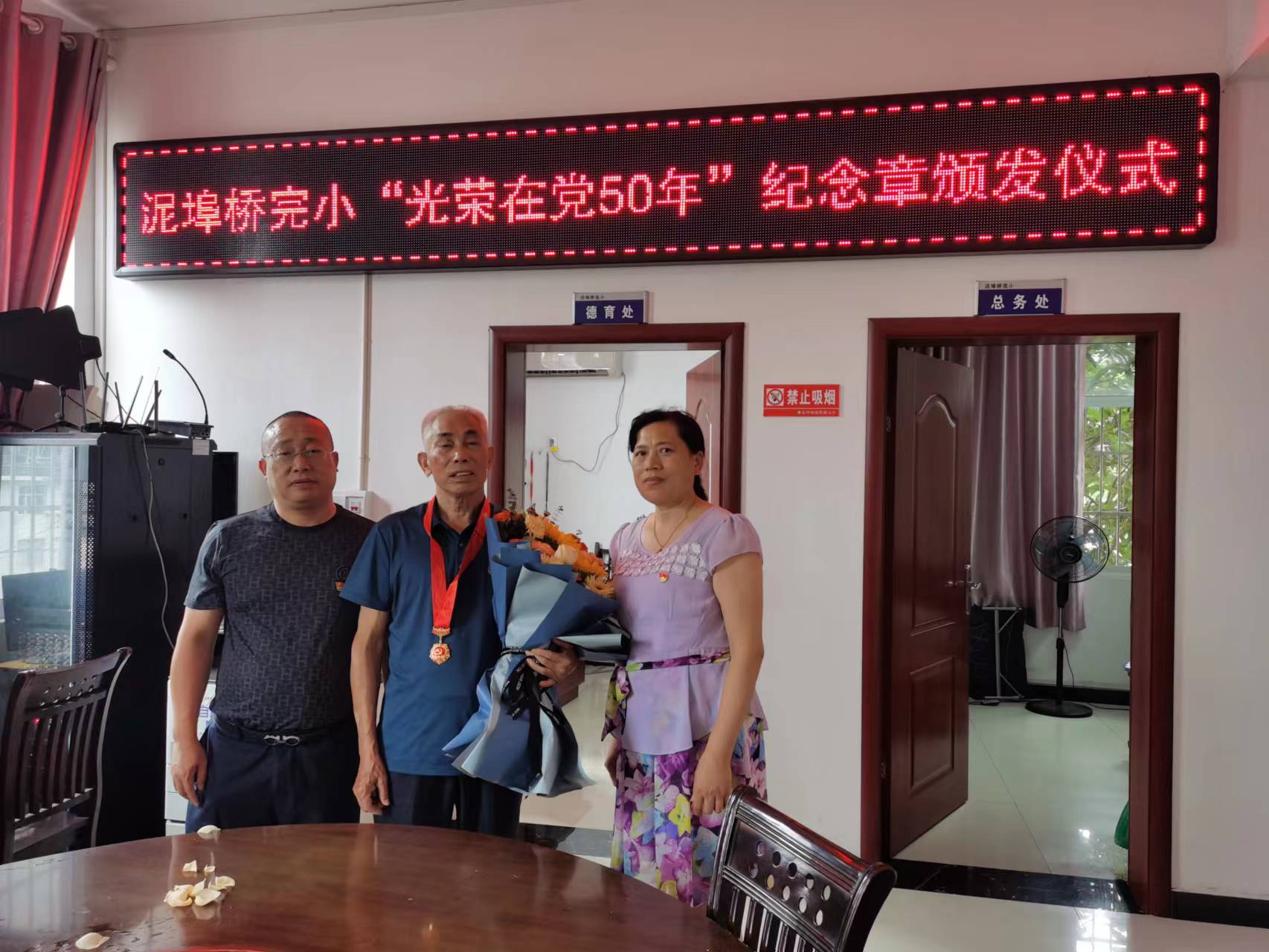 本网讯 7月7日上午10点,泥埠桥完小党支部举行了“光荣在党五十年”纪念章颁发仪式,为党龄五十年的老党员陆新民颁发“光荣在党五十年”纪念章。