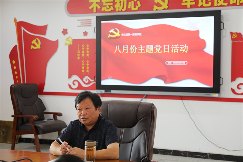 本网讯 8月24日,安化县第一芙蓉学校党支部全体党员在学校党员会议室举行了八月份主题党日活动。 活动观看了红色视频《中国共产党为什么要叫“共产党”》《改变中国的力量:这是我们共同的家园》,并进行了集中研讨,党支部书记廖耀南从两个确立、治国理政四个理念等方面与全体党员进行了深入的交流,他强调:“党员同志一定要具有良好的师德、要听从党的指挥、要不怕吃苦迎难而上,做好党员引领示范作用!” 会后,党员同志们根据劳动任务分工,拿起卫生工具前往自己负责的区域热火朝天地动了起来。炎炎烈日下,一个个身影显得格外动人,一枚枚党徽显得格外耀眼。(通讯员:李韦奇 万扬)