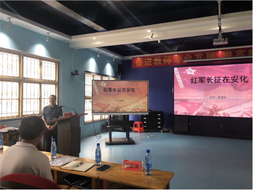 本网讯 8月28日上午9时,渠江镇全体教师正在渠江学校智慧教室参加暑假培训班的第四站活动——学党史,明初心。会议邀请了安化县党史联络组副组长廖建和为全体教师上党课《红军长征在安化》。这是渠江镇中心学校党支部整建提质研讨会的一个重头戏。 廖建和同志从“红军长征为什么经过安化”“红军长征在安化留下了哪些红色印记”“红军经过安化的意义”“红军长征带给安化的启示”四个方面讲述了红军在安化的历史,重点提到了发生在渠江的“一条军裤”“一座浮桥”“十块银元”“一条古道”和“几处战壕”的故事,指出这些故事体现了“军爱民,民拥军”的深刻内涵,希望渠江教师讲好红色故事,传承红色精神。 党课之后,该镇中心学校党建专干罗姣玉向大家讲解了党支部整建提质的主题、要求和涉及的重点领域,并特别强调各校要落实未成年人保护工作,通过多种方式提升未成年人的自我保护能力。中心学校党支部书记、校长陈代亮指出,要加强党组织建设,通过整建提质专项行动,打造一支高凝聚力和高战斗力的教师队伍。(通讯员 罗姣玉)