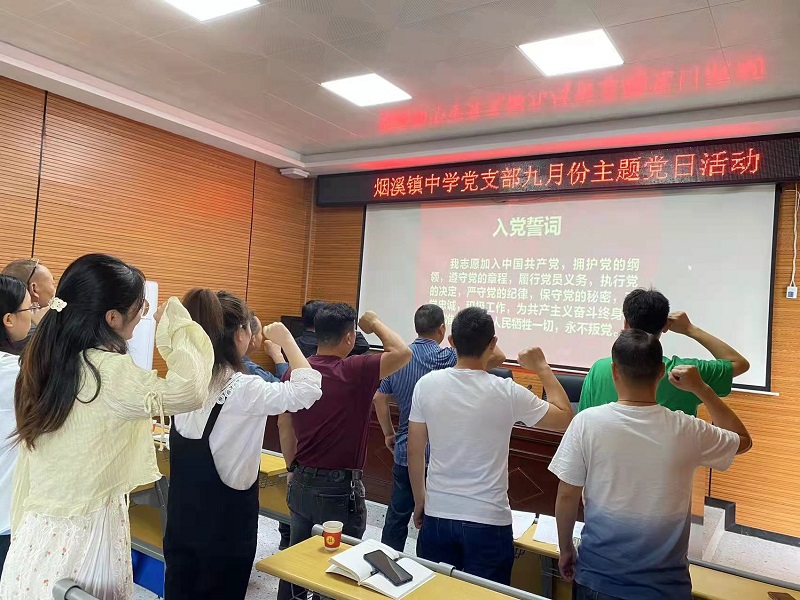 本网讯 9月21日上午,烟溪镇中学党支部开展了“整建提质,你我同参与”九月份主题党日活动。 在青年党员李元的领誓下,全体党员重温入党誓词,牢记使命。 全体党员观看教育微视频,党支部书记刘开颜组织学习习近平总书记省部级主要领导干部专题研讨班上重要讲话精神,支部委员刘洪丁组织学习《习近平谈治国理政》第四卷之新时代党和人民奋进的必由之路。 烟溪镇中心学校党总支书记胡毅组织学习《安化县教育系统基层党组织整建提质专项行动实施方案》并总结本次活动,胡毅对整建提质提出三个要求,一是要提高认识 ,全面宣传;二是要严格落实,确保实效;三是要考核督查,总结提升。 据悉,烟溪镇中学将继续推进整建提质工作,不断增强全校教职员工政治意识,为党的二十大胜利召开营造稳定和谐的政治环境和社会环境。