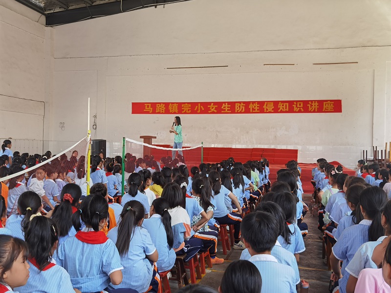 本网讯 9月27日上午,马路镇完小在大礼堂开展了“女生防性侵”知识讲座,四到六年级的女生参加了本次讲座。