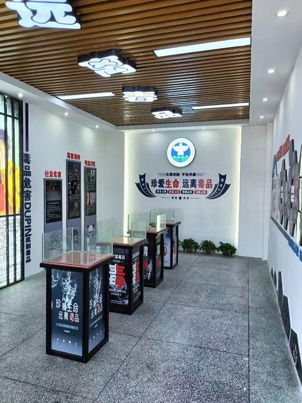 本网讯 10月12日,小淹镇中学禁毒教育展览室的建设工作基本完成。 该禁毒展览室占地面积40多平方米,分三个区域,一是毒品模型展示区,学校制作了专门的禁毒展示柜用于展示毒品模型,并购买仿真毒品模型和仿真吸食工具用于展示并进行毒品预防教育用途。二是禁毒预防教育展板区,展板区分成四大展板,内容涵盖什么是毒品、毒品的危害、学生如何拒绝毒品以及学校开展禁毒预防教育的系列活动等,从不同角度宣传禁毒预防教育。三是禁毒预防教育学生作品展示区,学校开展的禁毒预防教育的漫画和征文的活动收集的学生作品,装裱上墙,从另一方面对学生进行禁毒宣传教育。后期,学校还将配置电视,不断循环播放有关禁毒教育的宣传片,使学生从更直观、生动的事例中接受禁毒预防教育。 禁毒预防教育展览室的建设,大大丰富了学校禁毒预防教育的宣传手段,增强了学校禁毒预防教育的氛围,更能提高师生的校园识毒、防毒和拒毒意识,为创建禁毒示范校起到极大的推动作用用。
