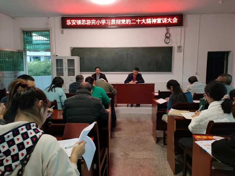 本网讯 11月3日下午,乐安镇思游完小全体教职员工进行了党的二十大精神宣讲大会,并部署开展“党的二十大精神进校园”活动。宣讲大会上,党支部书记李晓红指出这次党的二十大,取得了两个重大成果:一是选举产生了新一届中央委员和中央纪律检查委员会,二是选举产生了以习近平同志为核心的新一届中央领导集体。与会教师聚精会神,认真做好学习笔记。会后老师们纷纷表示,会继续深入学习领会报告精神实质,深刻把握报告的重大意义,并把党的二十大精神贯彻到教育教学、生活中,将思想与行动相统一,为党和国家培育更多优秀的社会主义建设者和接班人。 据悉,党的二十大期间,思游完小利用文化墙、电子屏、展牌等对党的二十大进行了广泛宣传,组织师生观看视频、学习党史,营造了浓郁的爱党爱国氛围。此次宣讲会后,思游完小的全体老师表示,将用新思想武装头脑、指导实践,做好党的二十大精神进头脑、进教材、进课堂。(通讯员 王茂华)