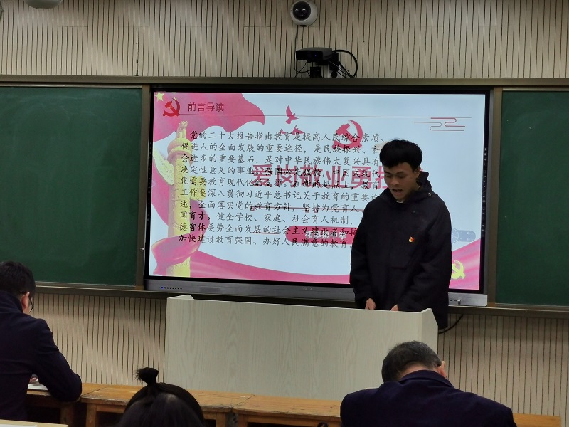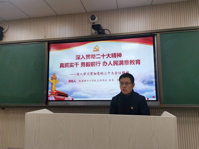 本网讯 11月18日下午,柘溪镇中心学校党支部在镇中学云录播室开展“深入学习党的二十大精神 奋进新时代新征程”主题党日活动。 活动组织观看了二十大精神视频:《二十大报告解读 | 非凡成就 伟大变革》《二十大报告解读 | 理论创新 行动指南》。党支部书记、校长刘良刚讲题为《深入贯彻党的二十大精神 真抓实干 勇毅前行 办人民满意教育》党课,要求全体党员发挥先锋模范作用,把党的二十大精神贯彻到工作中去,引领全体教职工在今后的工作中,以办人民满意教育为宗旨,以教育高质量发展为主线,以五育融合、发展素质教育为核心,以促进教育公平为主责,努力提高教育教学质量,踔厉奋发,勤奋有为,不负党和人民的期望。 预备党员欧阳雕同志的微党课《三尺讲台守初心 立德树人勇担当》用“身边事”讲清“大道理”,语言通俗易懂、方式简便灵活,接地气、入人心、有实效。