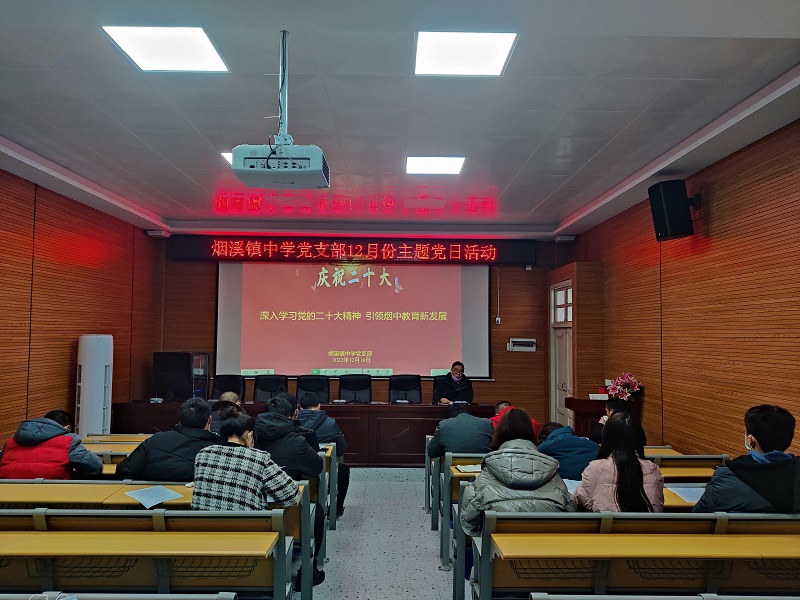 本网讯 12月16日,烟溪镇中学党支部召开了“深入学习党的二十大精神,引领烟中教育新发展”12月份主题党日活动暨预备党员转正会。 会上,全体党员观看二十大党章视频,学习了党的二十大报告、十九届中央纪委工作报告、新修订的党章。党员们深刻领悟了党章修订的重要意义、知晓了党章修改的内容,在新旧党章对比学习中,进一步体会到了党的理论创新、实践创新和制度创新的时代特色,以及中国共产党人推陈出新、与时俱进的创造精神。 转正对象杨洋同志宣读了中共预备党员转正申请,汇报了自己在预备期内的表现情况。刘开颜、刘洪丁两位同志作为入党介绍人,从思想、工作、作风各方面对杨洋同志在预备期内的表现给予了充分肯定,一致推荐该同志如期转正。到会党员对杨洋同志预备期内的表现逐一发言,并以无记名投票方式对杨洋同志按期转正进行了表决。经表决一致同意杨洋同志按期转正,成为一名正式的中国共产党党员。 烟溪镇中心学校党总支书记胡毅对本次活动作总结,他表示本次活动准备充分,主题明确,党员们学习认真,全体党员要进一步将党的二十大精神入脑入心,将学习成果转化为锐意进取、开拓创新的不竭动力,以实际行动忠诚履职、砥砺奋进,为建设更好的烟溪镇中学、为办人民满意的教育贡献自己的一份力量。