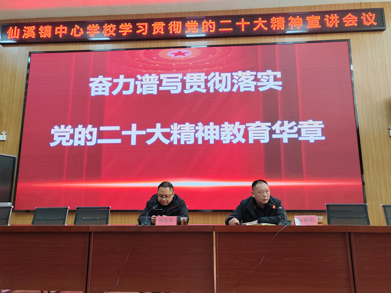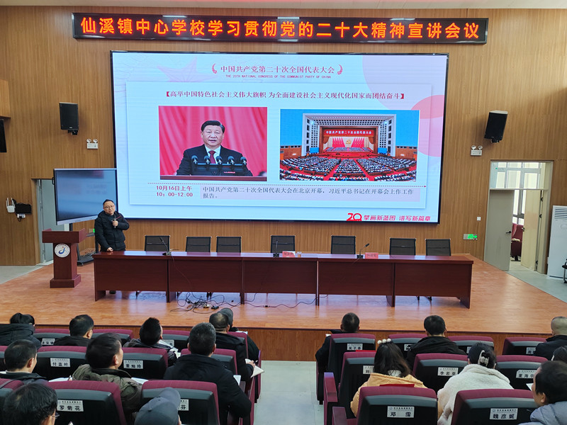 本网讯 2月14日下午,仙溪镇中心学校邀请县教育局党组副书记、副局长邹友良为全镇党员宣讲党的二十大精神,宣讲会由仙溪镇中心学校党总支书记、校长刘慈军主持。 在仙溪镇完小多媒体会议室,邹友良作了题为《谱写新时代中国特色社会主义更加绚丽的华章》的辅导报告。他从“全面领会党的二十大的主题及主要成果”“深刻认识新时代十年的伟大变革及其里程碑意义”“不断开辟马克思主义中国化时代化新境界”“牢牢把握新时代新征程中国共产党的使命任务”“贯彻落实新时代新征程的战略部署”“用新的伟大奋斗创造新的伟业”等六个方面对党的二十大精神进行了深入的解读。 刘慈军指出,各校要以这次专题宣讲的辅导报告为契机,精心组织,周密部署,认真学懂弄通悟透党的二十大精神,找准目标,锐意进取,不断推动学校的发展。 与会的100多名党员及部分教职员工认真聆听了报告,党员们一致表示要认真学习、深刻领会、贯彻落实好党的二十大精神,不负伟大时代,不负教师使命,立足岗位,攻坚克难,为推动仙溪教育的发展而不懈奋斗。