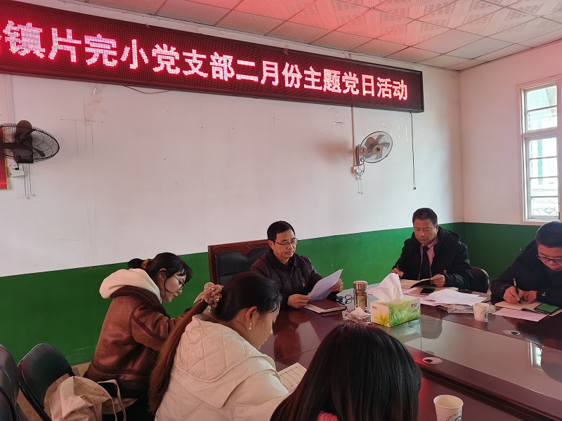 本网讯 2月24日下午,马路镇片完小党支部在中心学校会议室举行2月份主题党日活动,活动由支部书记邓柱岩主持。 全体党员重温了入党誓词。党建专干邓迪华组织学习《关于开展二月份主题党日活动的提示》《中央组织部决定追授朱治国“全国优秀组织干部”称号》文件。全体党员、积极分子集中观看了《党章为什么增写“走中国特色社会主义法治道路”》微视频和《一名组织部长的生命答卷——青海省委组织部原副部长朱治国同志先进事迹》的录像片。大家根据学习内容积极发言,谈自己的所思、所想、所得。 邓柱岩对本次活动进行总结,他要求全体党员、积极分子以此次主题活动为契机,学习落实好党的二十大精神,认真开展谈心谈话活动,发挥党员先锋模范作用,为马路教育的发展贡献力量。