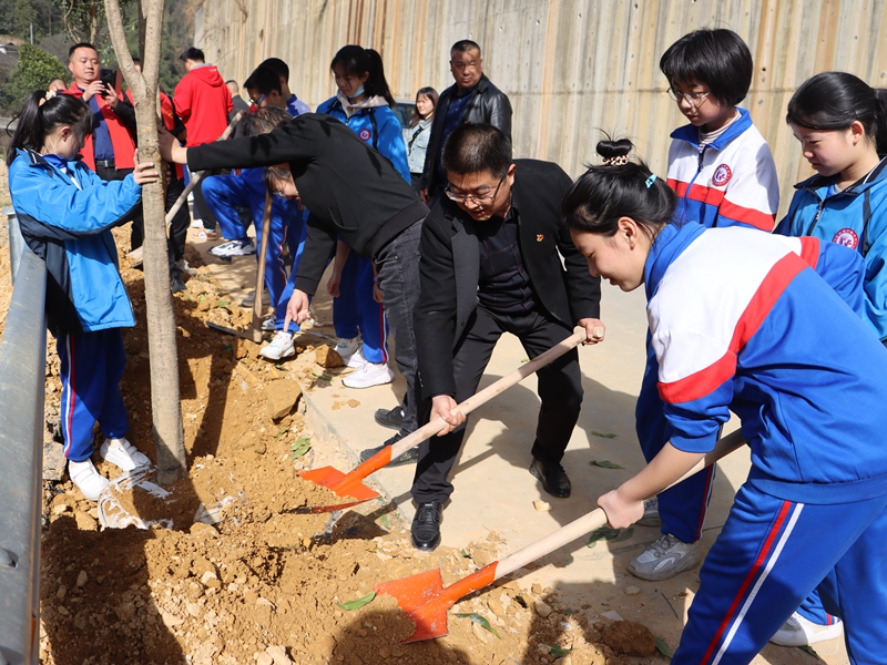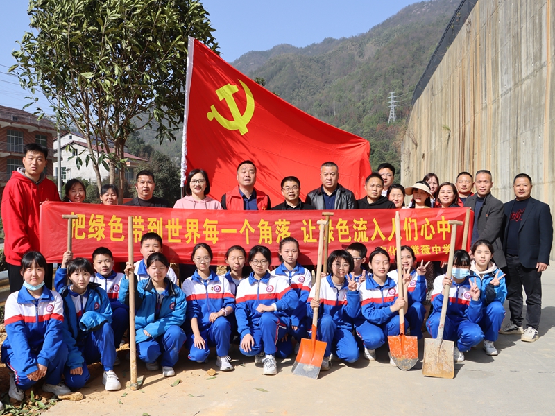 本网讯 3月13日上午,安化县紫薇中学党支部和团委共同组织开展植树活动,该校党支部书记、校长曹文武率领支部委员会成员、党员教师代表和学生志愿者代表共计20多人到黑茶学校外的植树点参与本次植树活动。 在植树现场,大家分工协作,有的挥锄挖坑,有的扶木正枝,有的铲土植苗,有的提桶浇水,亲手栽下一棵棵新苗,一片热火朝天的劳动景象。大家干劲十足、分工明确、配合默契,每一道工序都一丝不苟,每个流程都认真细致。经过大家的努力,一棵棵新栽种的树苗迎风挺立,在明媚的春光中焕发出勃勃生机。 此次植树活动种下的不仅是树苗,也把绿色生态环保的理念植入师生的心底,为绿色低碳发展播种下新的希望。