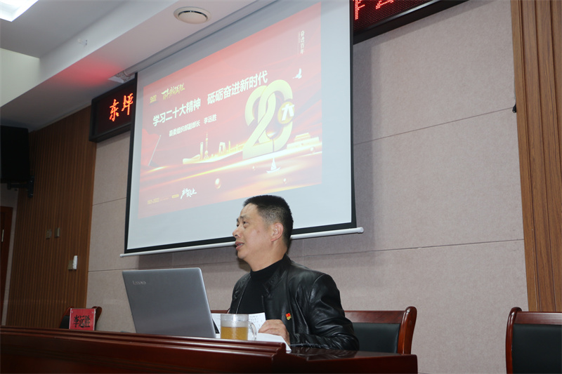 本网讯 3月17日,安化县委组织部副部长、县委两新工委书记李远胜到东坪镇中心学校,向东坪镇各中小学校党支部书记、城区各幼儿园园长、东坪镇中心学校机关全体成员进行党的二十大精神宣讲。 李远胜以《学习党的二十大精神、砥砺奋进新时代》为题,从“全面领会党的二十大的主题及主要成果”“深刻认识新时代十年的伟大变革及里程碑意义”“牢牢把握新时代新征程中国共产党的使命任务”“用新的伟大奋斗创造新的伟业”等五个方面,对党的二十大精神作了全面的宣讲。他旁征博引、举例生动,深入浅出地阐释了党的二十大精神,获得了与会同志的高度认同。 与会同志表示:通过这次宣讲活动,大家更加深刻地理解了党的二十大精神。在新的时代背景下,作为基层教育管理工作者,我们一定贯彻落实党的教育方针,为社会主义现代化建设培养更多更好的人才,为实现中华民族伟大复兴而奋斗。