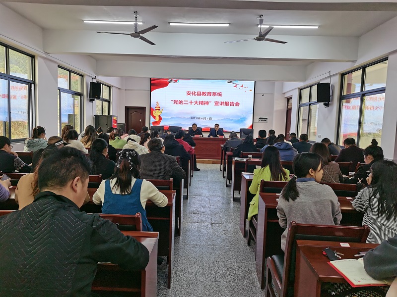 本网讯 4月7日下午,安化县教育局党组成员、副局长刘胜辉到马路镇中心学校宣讲党的二十大精神。马路镇中心学校党总支书记、校长黄攀峰主持宣讲会,县教育局党工委办刘霞、马路镇各学校全体党员和积极分子共70人聆听宣讲报告。