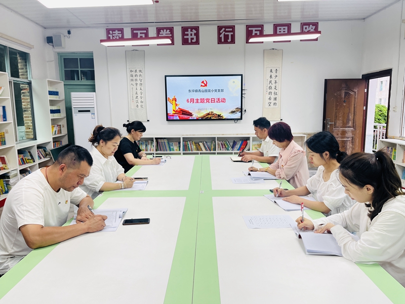本网讯 6月19日,青山园完小全体党员齐聚学校阅读室,举行6月党日专题活动。