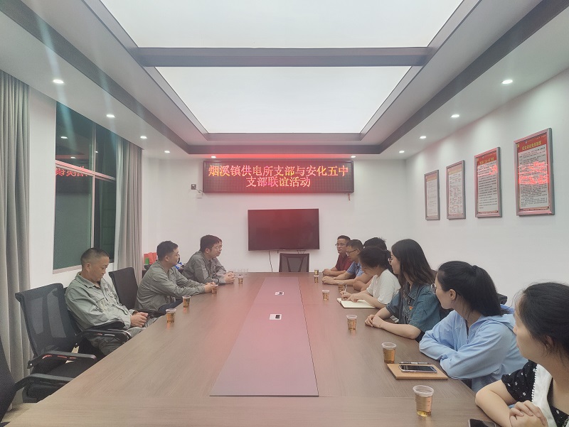 本网讯 6月25日,安化五中党支部与烟溪供电所党支部进行交流活动。安化五中党支部全体党员和入党积极分子参加活动。 龚加宜对五中近年来的发展情况和本次高考取得的成绩做简要的介绍,并对近几年来烟溪供电所为保障五中师生用电需求所提供的帮助与支持表示由衷的感谢。 烟溪供电所党支部书记周继长对五中高考取得的辉煌成绩表示热烈的祝贺,将继续深入了解校园用电负荷和用电需求,及时消除用电隐患,为学校师生打造舒适安全的教学用电环境。 龚加宜向长期以来关心和支持安化五中发展的各级领导和社会各界爱心人士表示衷心的感谢,诚盼与烟溪供电所支部继续通力合作,为库区教育事业谱写新华章。