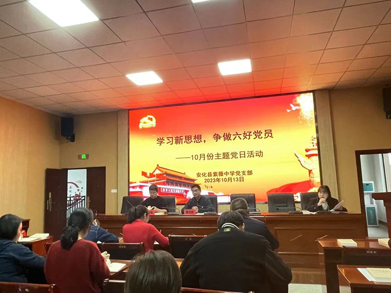 本网讯 10月13日,紫薇中学党支部在学校大会议室开展“学习新思想,争做六好党员”主题党日活动。 活动中,与会人员观看了党员教育片,对党员纪律有了更深刻的认识,坚决做到“两个维护”,是全体党员最根本的政治纪律和政治规矩。随后,李华集同志组织学习了党内监督条例和党建带关建等内容,细致研读了《关于习近平新时代中国特色社会主义思想的核心内容专题摘编》,进一步提升了党员同志的思想高度。 会上,对下一届支委会委员候选人名单展开了讨论推荐,通过投票选举,下一届支委会委员候选人名单是曹文武、李华集、张婷、谌高康、梁艳霞、熊胜强。 党支部书记曹文武表示,全体党员同志要强化意识形态,坚决维护习近平总书记党中央的核心、全党的核心地位,坚决维护党中央权威和集中统一领导;要提升思想认识;要务实教学工作,提高教学质量。