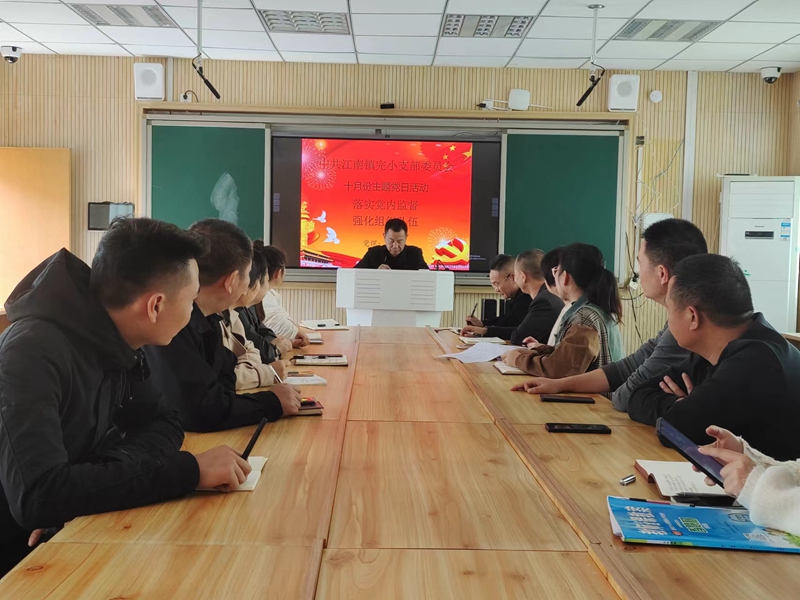 本网讯 10月20日,江南镇完小党支部组织召开第四季度党员大会暨10月份主题党日活动,支部所属全体党员、入党积极分子和团员青年参加,党建专干朱志兵主持。 大会组织观看了党员教育片,重温了《中国共产党入党誓词》。支部书记贺剑伟讲题为《落实党内监督 强化组织队伍》党课,要求与会人员准确把握《中国共产党党内监督条例》的重要意义,深入开展批评与自我批评。党员教师要耐得住寂寞,经得住诱惑,管得住手脚,依纪依法履职,树立廉洁从教的道德操守。朱志兵组织学习了《习近平新时代中国特色社会主义思想专题摘编》《党的二十大报告学习辅导百问》。会议还以学习小组为单位,就如何“学原著,悟思想,促提升”进行了讨论。 会议强调:全体党员教师要坚定政治站位,加强党性修养,严守政治纪律和规矩,模范执行《中国共产党党内监督条例》,真正实现抓早抓小,防微杜渐,做人民满意的“四有”好老师。