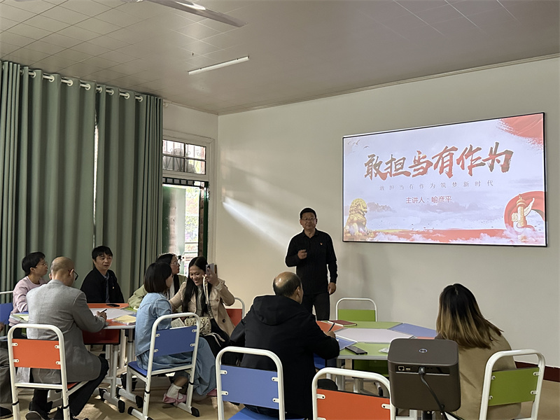 本网讯 10月27日下午,梅城镇东华中学党支部举行10月份主题党日活动,由该校党支部书记、校长喻彦平主持。 全体党员在党建会议室共同观看了《党史中的纪律 | 坚决做到“两个维护”》《解读〈全国组织工作会议〉选集 | 路线决定方向 组织凝聚力量》。喻彦平以“做敢担当,有作为的人民教师”为全体党员同志上了一节微党课,他指出:全体党员同志要坚定不移的维护以习近平同志为核心的党中央权威,拿出实实在在的举措,化为实实在在的行动,面对新形势、新任务,要战胜在我们学校党建发展前进道路上的一切风险挑战,解决好在我们学校党建工作中面临的矛盾困难。接着又集中学习《党的二十大报告辅导学习百问》《党的二十大党章修正案学习问答》《习近平新时代中国特色社会主义思想专题摘编》等主题教育资料,并紧紧围绕学习内容,全体党员谈认识、谈体会、谈建议,深入开展了交流研讨。老党员付业文同志在交流中认为,作为一所百年老校的东华中学,要想做大做强,为国家培养更多的优秀人才,一定要充分发挥我校党的组织优势,激发党员干部奋斗精神,因此每个党员同志都要有先锋模范意识,责任担当意识,正心表率意识。 大家通过此次主题党日活动,纷纷表示:在今后的工作中,将进一步坚定理想信念,增强党员的宗旨意识和服务意识,严守党的纪律,发挥党员先锋模范作用,立足本职岗位,激发创先争优的昂扬斗志,积极担当作为,为教育事业贡献力量。