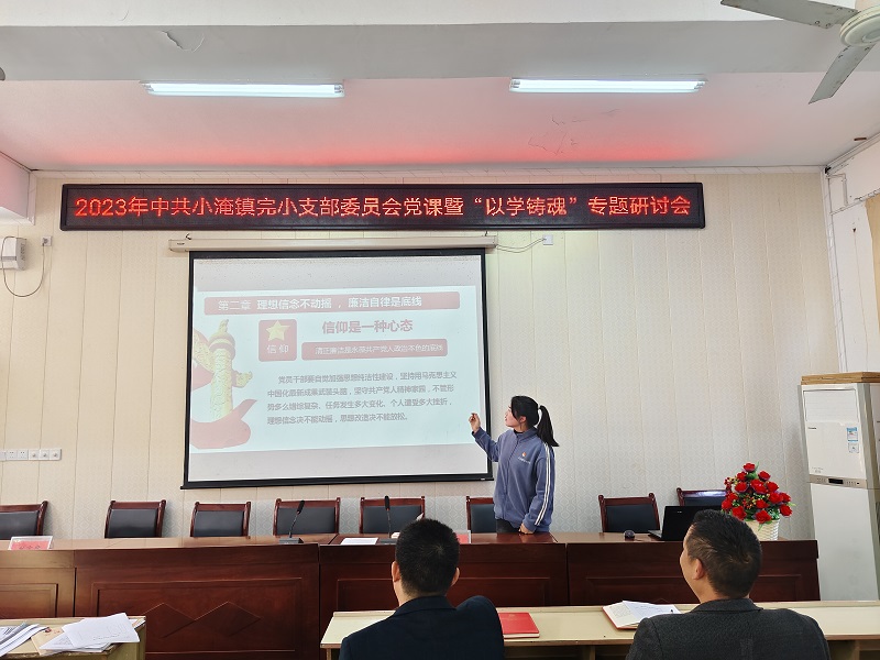 本网讯 11月23日,小淹镇完小党支部在学校多媒体教室举行11月份主题党日活动。 党建专干肖锋组织全体党员观看党员教育片,并自主布置学习任务。宣传委员刘竞花组织学习《中国共产党章程》第六章,七章。党支部书记李志新组织学习《中国共产党巡视工作条例》,并结合学校实际强调了有关“主题教育期间”相关工作要发挥党员先锋作用,加强工作纪律。 李志新上了一堂党课《党员教师如何立足岗位做好本职工作》;从四个方面来严格要求党员教师。党员教师代表刘芳妤和丁巍分别上了微党课《做合格的党员》《保持纯洁促廉政》,精美的PPT课件,生动的语言,很出彩。主题教育“以学铸魂”研讨由李志新组织,党员们纷纷拿出自己撰写的讨论稿,参与集体讨论。 与会党员感慨,党员日活动内容丰富,形式多样,提高了政治觉悟,把学习当做生活日常行为。 (通讯员:刘竞花 肖锋)
