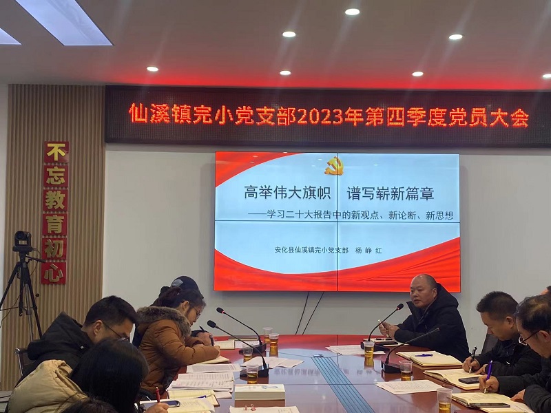 本网讯 12月20日,仙溪镇完小党支部组织开展12月份主题党日活动,活动由该支部党建专干陈美蓉主持。 会上,全体党员重温入党誓词,观看了党员教育片;支部委员陈美蓉组织集中学习《习近平谈治国理政》第四卷 ,活动组织所有党员围绕“如何立德树人、加强师德师风建设”进行集中研讨交流,大家集思广益,建言献策,大家一致认为“亲其师、信其道”老师们要树立良好形象、用真心爱心对待每位孩子,总会获得家长们的一致认可。 支部书记杨峥红和支部委员李安建分别上了题为《高举伟大旗帜、谱写崭新篇章》《基层党员的个人素养》的党课,要求支部每位党员继续强化学习教育,坚定理想信念,要做一个勇于担当、爱岗敬业、乐于奉献的党员教师。 与会党员纷纷表示,要在榜样精神的激励和鼓舞下砥砺前行、并肩奋进,在平凡的工作岗位作出不平凡的贡献。