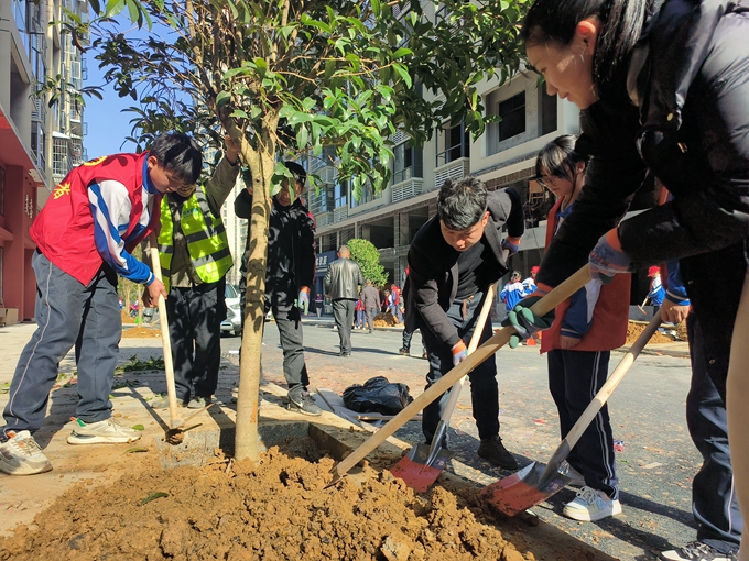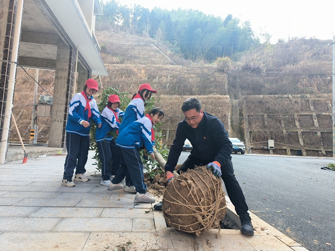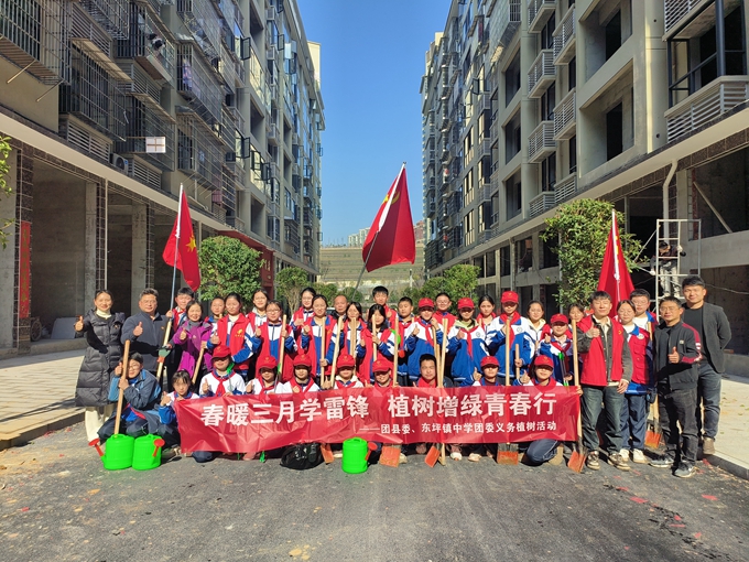 本网讯 3月12日,在共青团安化县委的组织下,东坪镇中学党支部书记、校长刘巩元带领党员志愿者、八年级预备团员和七年级中队长共30多人,来到东坪镇南区吉祥隧道安置区开展“党团队共建育人,春暖日植树增绿”植树节活动,以实际行动厚植生态底色,留住绿水青山。 活动现场,党员、团员、少先队志愿者们挥锹铲土、扶苗填坑、培实新土,每道工序都认真细致,每个环节都配合默契,大家干劲十足,合力栽下了10余株树苗。植完树后,志愿者们还积极主动捡拾周边街道上的垃圾,倡导附近居民群众爱护社区人居环境,以实际行动为建设美丽家园添砖加瓦。党员同志们更是率先垂范,为团队志愿者们树立了榜样。团队志愿者们积极投身造林绿化实践,展现出新时代青年应有的担当与作为。 刘巩元表示,此次党团队共同植树增绿活动,展现了该校“党团队共建,一体化育人”的特色理念和“五育并举”的教学思想,进一步凝聚了党团队力量。