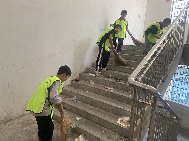 本网讯 4月8日,平口完小党队志愿者开展“强生态文明,促养成教育”志愿服务活动。 悉知小学桥旁的居民楼道是学生上下学的必经之路,又是无人管理的区域。因此,每隔一段时间,5层楼的楼道里就垃圾成堆。为了给大家一个干净的环境,午休时间第三志愿小组党员教师刘倩静、陆军以及134中队、147中队、125中队、132中队的小志愿们拿着清扫工具对学校周边的楼道等进行清扫,大家分工明确,有的扫前坪,有的清理窗台,还有的扫楼道。 其中一个小队员边扫边嘀咕道:“上次才扫没有多久,放个假就这么多的垃圾,以后不光我们自己不要乱扔乱丢,回去还要告诉来接孩子放学的大人们也要爱护环境!”经过一个小时的清扫,校园周围的环境焕然一新,周边的居民都给小志愿者们竖起了大拇指。