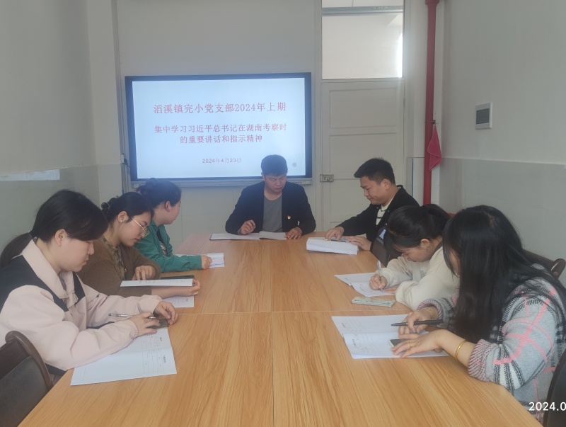 本网讯 4月23日,滔溪镇完小党支部开展“学党纪条例,亮党员身份”4月份主题党日活动。 会上,全体党员观看教育片《传承红色保密印记:信仰基因》,重温入党誓词,开展基层党组织主题教育工作,组织学习习近平总书记在湖南考察时的重要讲话和指示精神以及在新时代推动中部地区崛起座谈会上的重要讲话精神《习近平在湖南考察时强调 坚持改革创新求真务实 奋力谱写中国式现代化湖南篇章》《习近平主持召开新时代推动中部地区崛起座谈会强调 在更高起点上扎实推动中部地区崛起》,学习《中国共产党重大事项请示报告条例》《中国共产党纪律处分条例》,全体党员围绕主题展开交流讨论。 该校党支部书记李仁对3月党建工作进行了总结,对4月党建重点工作进行强调。他要求大家要严守党的纪律,坚守行为底线,加强党性锻炼,始终把纪律和规矩放在前面,不断改进工作作风,忠诚履行岗位职责,时刻保持清醒头脑,时刻牢记自己是共产党员的身份,切实做到心中有党、心中有责,积极发挥党员模范带头作用,做好各项工作。