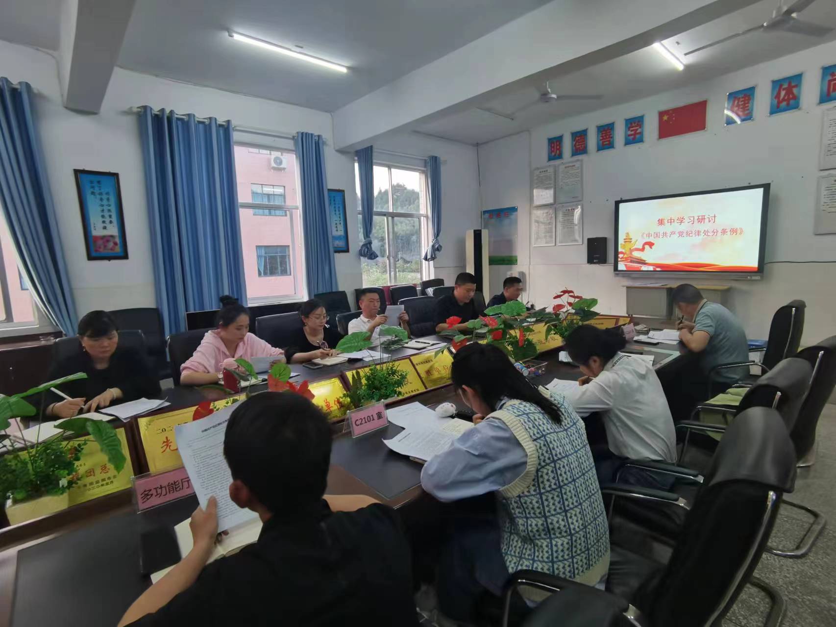 本网讯 4月23日晚,东坪镇酉州学校党支部举行4月份主题党日活动。会议由支部书记王飞主持,全体党员教师参加。 王飞组织全体重温入党誓词,观看党员教育片。组织委员张团方组织学习《习近平在湖南考察时强调 坚持改革创新求真务实 奋力谱写中国式现代化湖南篇章》《中国共产党纪律处分条例》并开展“2+X”学习研讨,党员们纷纷表决心,时刻做到明大德、守公德、严私德,清清白白做人、干干净净做事。 夏乐、李诗同志主讲微党课,主题为“传承红色精神”,两位同志分享了如何将红色精神融入教育教学中的经验,让爱国主义精神在学生心中牢牢扎根。 支部书记作总结发言,给全体党员提出两点建议:一是建议党员们向李诗、夏乐同志学习,多思考如何将红色精神与自己所教学科相结合。二是建议党员们在业余时间要坚持学习,尤其要针对自己不足的方面,比如思想上、业务上等,要不断充实自己。