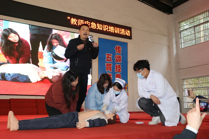 本网讯 2月17日,马路镇完全小学党支部联合马路镇中心卫生院党支部开展“院校联谊 守护健康”教师应急知识培训。本次培训共有95名教师积极参与,共同学习急救技能,为守护师生生命健康筑起一道坚实的防线。 本次培训首先从理论出发,医务科科长廖卫用清晰明了的视频和深入浅出的语言,强调了急救“黄金4分钟”的重要意义,随后讲解并展示了日常生活中可能遇到的突发事件及常见意外伤害的有效处置方法,如:心脏骤停、气道异物梗阻、溺水等应急救护措施和注意事项。教师们认真聆听,用心记下各项急救措施的原理、操作步骤和注意事项。 随后,在医护人员的配合下,他们为大家演示了观察生命体征、心肺复苏术及海姆立克急救法的操作步骤及注意事项。老师们听得十分认真,并踊跃上前操作体验,掌握急救要领。 整个讲座过程中,老师们听得津津有味,不时发出阵阵掌声。在互动环节,老师们积极提问,医护人员耐心解答,现场氛围十分活跃。 培训结束后,老师们纷纷表示收获颇丰,对于校园安全有了更加深刻的认识,也掌握了更多实用的应急处理技巧。 初审初校:邓洁 复审复校:邓翠玲 终审终校:龚燕