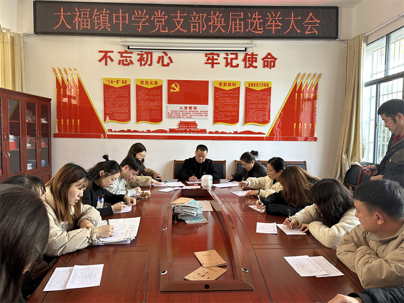 本网讯 3月20日,大福镇中学党支部召开换届选举大会,会议由组织委员孟秋红主持,此次大会严格按照党章和相关规定,确保了选举的公开、公平、公正。
