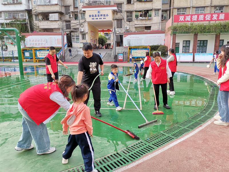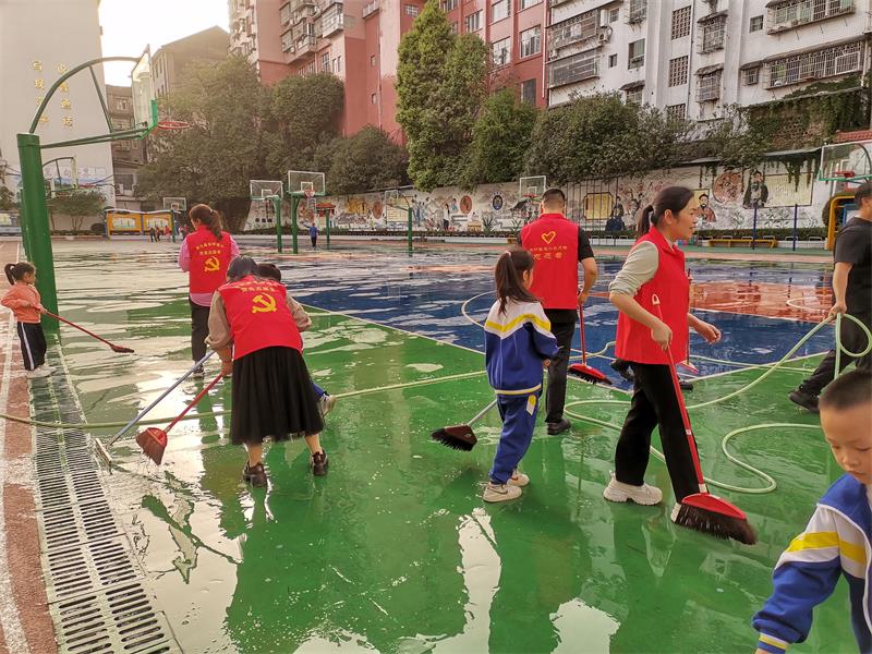 本网讯 4月14日,美丽东风园内党旗飘扬,党徽闪耀,只见该校近20余名党员教师在党支部书记、校长陈秀丽的带领下,身着红马甲,或手拿扫帚清扫、或手持水管冲洗,将田径场覆盖着的、来自万里之外的黄沙一扫而净。有几个低年级学生看到后,兴高采烈地加入清扫的队伍。 据悉,在日前暴风雨席卷安化之际,该校原本美丽的田径场面目全非,蒙上了一层黄泥沙,尘埃伴随着孩子们运动而蠢蠢欲动,不利于师生的健康,尤其是对孩子们课余在田径场运动和嬉戏带来了一定的不便,同时也会对地面塑胶造成一定程度的损坏。面对这一情况,陈秀丽立即要求副书记陶英勇安排党员教师开展本次义务劳动。此举得到了全体师生和广大家长的高度赞誉。 据了解,2025年3月,全体党员教师和少先队员为贫困师生进行爱心捐款,所筹集的资金全部捐赠给了学校的贫困师生。全体党员积极响应支部的号召,充分发挥党员教师模范先锋作用,让党旗在校园高高飘扬,让党徽熠熠生辉,让校园更加美丽。 初校初审:罗建刚 复校复审:谌学智 终校终审:陈秀丽