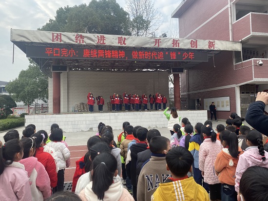 本网讯 3月6日,平口镇完小在升旗仪式上开展“赓续雷锋精神,让我们一起做追’锋’少年”为主题的学雷锋活动启动仪式。 学生代表孟思浩用生动的语言向同学们讲述了雷锋的光辉事迹,号召同学们学习雷锋不惧艰难、勇往直前的精神,他鼓舞大家,要牢记雷锋精神,争做新时代追“锋”少年。音乐老师高美霞带领全体师生齐唱《学习雷锋好榜样》,歌声响彻校园,久久地在学生心间飘荡。128中队带来舞蹈《红领巾心向党》,以别样的姿态向雷锋致敬。最后,同学们在国旗下立下铮铮誓言,更加坚定了学习雷锋的决心! 雷锋精神已在平口完小吹起了号角,各中队已经开展了“学雷锋”为主题的手抄报和班队活动,孩子们自发地穿上了志愿服走进了校园内外的各个角落,大家纷纷表示:学习雷锋从我做起,从身边的小事做起。与此同时,学校将继续开展“学雷锋”系列活动,把雷锋精神一直发扬下去,让雷锋精神永驻校园。