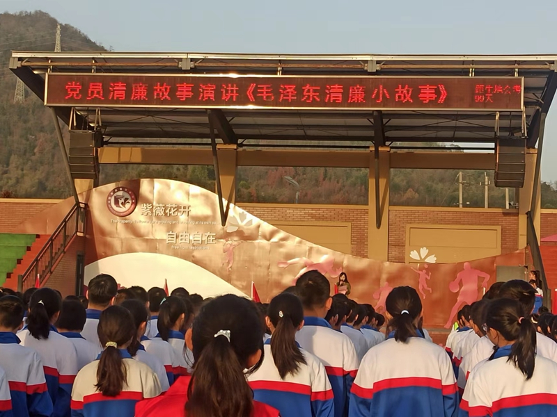 本网讯 3月13日清晨,在紫薇中学第六周升旗仪式上,该校党员教师胡双作了《毛泽东清廉小故事》演讲。这是该校清廉学校创建的举措之一,从去年下学期开始至今已由党员教师分享清廉故事近30个。 该校对清廉学校创建高度重视。将“清廉”融入学校建设的各个方面。清廉文化进课堂;清廉文化墙,清廉文化班刊,清廉文化手抄报,清廉文化书画、作文比赛作品在校园随处可见。各种活动开展不搞一阵风,能长久坚持。以每周清廉故事分享为例,可谓雷打不动,只有分享人不同,从学校党支部书记、校长,党员教师到学生会干部;只有分享内容不同,古今中外,革命前辈等名人的清廉故事涵盖其中。如不为五斗米折腰的陶渊明,举头三尺有神明的杨震,“要半文不值半文,莫道无人知者”的陶澍。还有伟大的无产阶级革命家毛泽东、刘少奇、周恩来、任弼时等伟人一心为民,廉洁奉公的感人故事。分享的这些故事像润物细无声的春雨滋润学生心田,廉洁的种子必然会生根开花结果。 据悉,前段时间,该校已经接受市“清廉学校建设示范点”的验收。