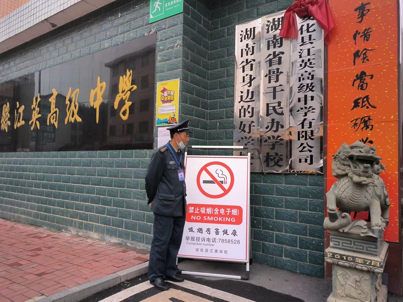 本网讯 3月30日上午,安化县江英高级中学的大门口摆放出了一块块“禁止吸烟(含电子烟)”“吸烟有害健康”等内容的温馨提醒宣传牌,这是该校“创建无烟校园,强化健康意识”,开展“关注健康,远离电子烟”教育宣传系列活动中的一个缩影。 本次活动通过多种渠道进行宣传,全体教师化身“无烟宣传员”,深入到学生和家长中,告知吸烟的危害。同时,在教室、宿舍、食堂、走廊、卫生间等公共场所张贴醒目的禁烟标语、标志,召开控制吸烟的主题班会,将“吸烟危害健康”“新型电子烟的危害”的知识有机融入到学校教学内容中。 在主题班会课上,各班班主任为学生讲解了“吸烟有害身体健康”的意义和有关知识,使学生们认识到了吸烟的严重危害,各班老师让学生提前搜集资料,认一认禁烟标志,通过画禁烟标识、制作禁烟宣传画、手抄报、黑板报等多种活动进一步的强化教育效果,提高学生禁烟意识。 学校党支部书记谢豪表示,本次活动是让师生提高对电子烟危害的认识,保护未成年人免受电子烟侵害,引导学生远离电子烟,自觉抵制电子烟,选择健康的生活方式,并通过由“小”及“大”,实现家校联合,共同营造和维护良好的校园无烟环境。