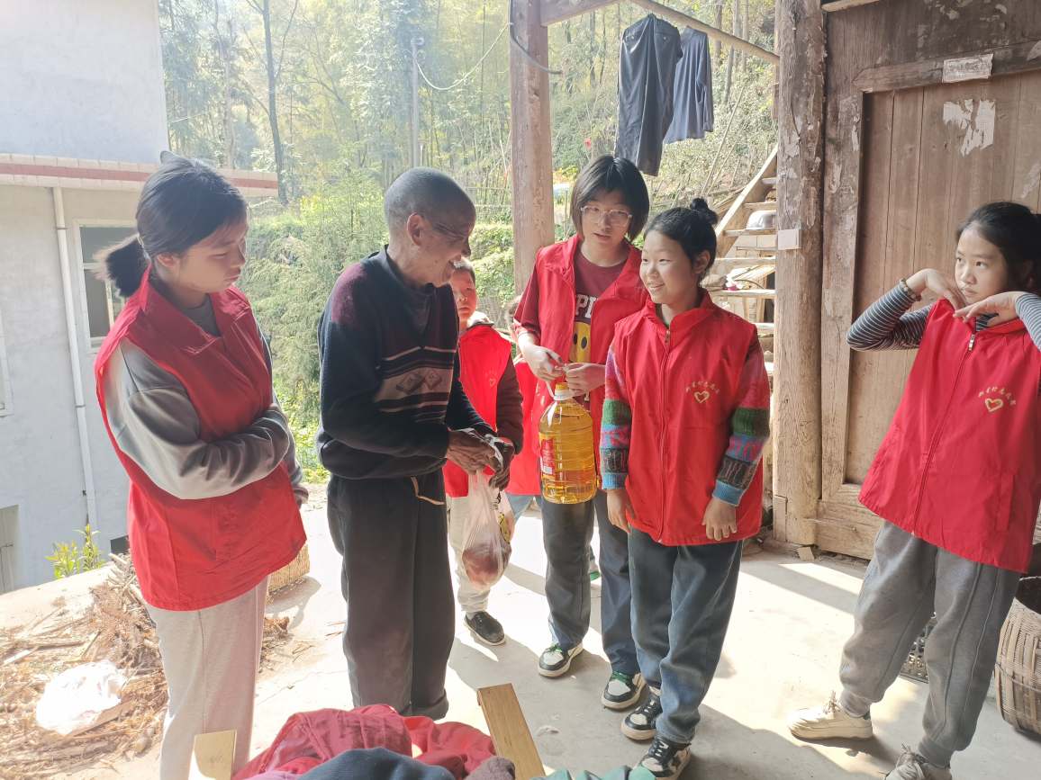 本网讯 4月9日上午,江南镇陈王完小六年级部分同学在学校及新星村委会的号召下,组织开展“迎春风,送温暖”慰问孤寡老人活动。 上午9点,在孤寡老人陈建太家中,小志愿者们围在老人身边嘘寒问暖,有的帮忙打扫卫生,有的帮忙整理衣物,老人也对孩子们报以慈祥的笑容,亲切的关怀。孩子们还用自己的零花钱为老人买了生活用品、食用油、牛奶、面包等慰问品。“感谢党和政府一直关心着我们,让我们现在老有所养,生活无忧,还培养出这么多优秀的少先队员们,将来的祖国会更加美好。”陈建太说道。 据悉,本次慰问活动共慰问孤寡老人10余户,爱心物资共50余件。该校相关负责人表示,后续将继续开展此类活动,培养学生孝亲敬老的传统美德。