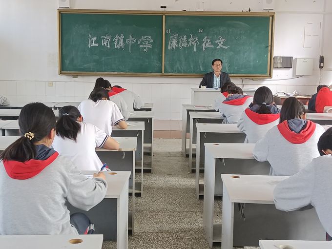 本网讯 4月10日,江南镇中学在科技楼录播室举行以“廉洁你我他,幸福千万家”为主题的征文竞赛活动。 该校把清廉文化与征文有机结合,开展“清廉杯”学生征文竞赛活动。活动以班为单位进行初选,选出优秀者参加学校比赛。据了解,3月份语文老师向学生推荐和分享相关的“清廉”故事或电影,通过小手牵大手的方式,让孩子与家长一同感受和体悟廉洁文化和清廉精神,引导孩子树立正确的价值观和是非观,培养思廉、倡廉、守廉的意识和能力,营造风清气正的良好氛围。 比赛中,选手们根据素材,以笔为媒纸为介,或讲叙清廉家风,或书写凛然正气,或歌颂清廉美德……诠释“清廉”内涵,接受“清廉”洗礼。