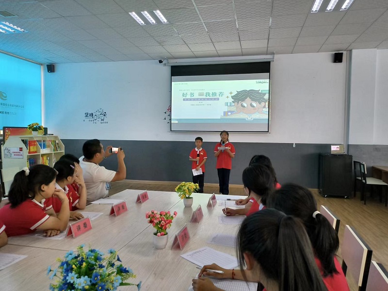 本网讯 4月20日下午,安化县江英学校小学部在校园书屋以“阅读书香,逐梦未来”为题开展主题沙龙活动。 活动前,各班初在班上开展“好书推荐会”活动,每班推荐1名“书香小推官”参与学校的主题沙龙活动。“书香小推官”围绕活动主题,结合阅读实际,突出好书亮点,创新推荐形式。在推荐好书时要使用标准普通话,语言要清晰、流畅、生动,有感染力。《小王子》《神笔马良》《朝花夕拾》《草房子》《爱的教育》等一本本好书深受“小推官们”的喜欢。经过评审,低年级组谢易佳、朱芸玥、贺子妮、陈诺,高年级组张博轩、张思悦、莫澄、邹沁仪等同学荣获一等奖,被评为校级“书香小推官”。他们将担纲校园书屋五月的“好书推广人”,为全校学生推广好书。 年级组长李坤老师介绍,学校成立了学生读书会,由学生自主管理,读书会定期开展主题活动。在世界读书日、校园读书节来临之际,让每一位学生都好读书、读好书,养成阅读习惯。