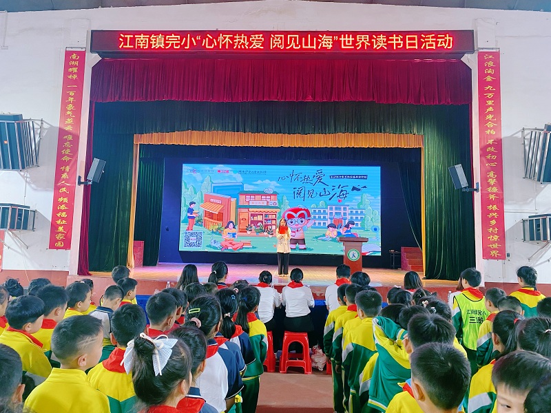 本网讯 4月21日上午,江南镇完小全校师生齐聚学校风雨球场参加世界读书日活动。长沙银行、湖南少年儿童出版社的工作人员参加活动。 长沙银行和少年儿童出版社的工作人员分别向孩子们分享了《我和我的祖国》《袁隆平传》《我的家乡十八洞》等书籍当中的经典故事,并号召同学们学习书中人物的优良品质,从小植根爱国情怀,台下学生认真聆听。工作人员将长沙银行发起的“读书漂流”活动,由湖南少年儿童出版社、各个书店和热爱读书的朋友手中赠出的近2000套精美图书捐赠给江南镇完小。 该校业务副校长希望全体同学要爱惜图书,持之以恒,要用实际行动去做一名“心怀热爱,阅见山海”的书香少年!