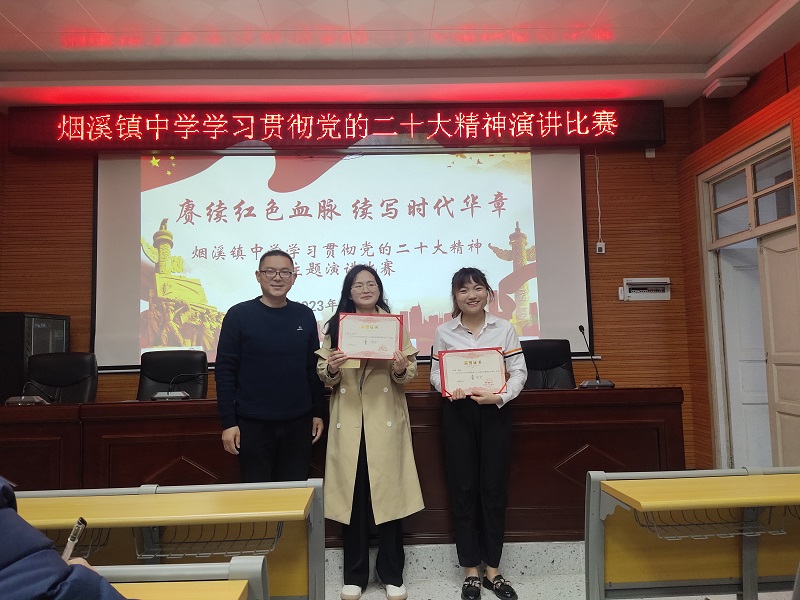 本网讯 4月26日,烟溪镇中学举行“赓续红色血脉,续写时代华章”主题演讲比赛。 比赛现场,6名参赛选手紧扣党的二十大精神,立足自身岗位,以“精神、人物、故事”为主线,从不同角度诠释对党的二十大精神的感悟和理解,用通俗易懂的语言讲述感人的教师育人故事;结合本职工作,表达对党和祖国、对教育事业的热爱。演讲时而慷慨激昂,时而娓娓道来,充分展现了教师立德树人、勇挑重担的精神风貌。 评委们结合演讲内容、语言形体表达、形象风度、整体印象等方面对选手进行了综合打分,评选出了一、二、三等奖,学校行政为获奖选手颁奖。 该校校长杨洋表示本次演讲比赛选手们准备充分、声情并茂,进一步坚定全体教师“永远跟党走,做廉洁教师,守育人初心”的理想信念,激励全体烟中人踔厉奋发,勇毅前行,谱写烟中更加光辉灿烂的篇章。