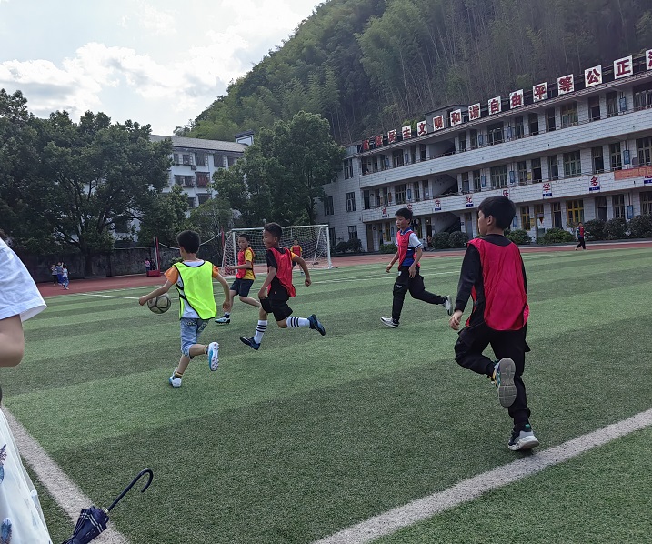 比赛开始,足球小健将们身着鲜艳的队服,个个精神十足,脚下功夫了得,随着对场地的熟悉以及对手球风的了解,渐入佳境,抢球传踢,气势凌厉,不时打出精妙的配合和有威胁的射门。各班级老师和拉拉队员们也不甘示弱,努力加油鼓劲,场上一片紧张而又欢乐的气氛。
