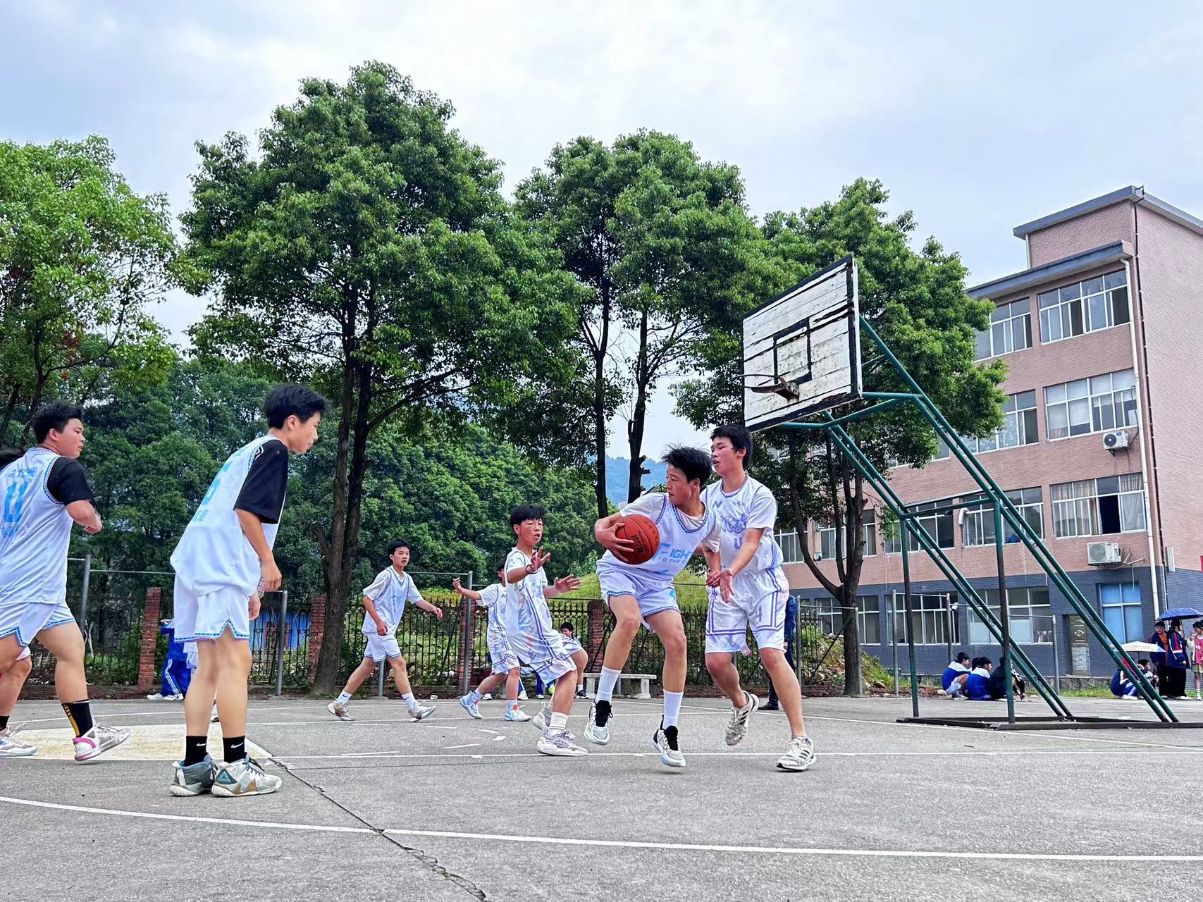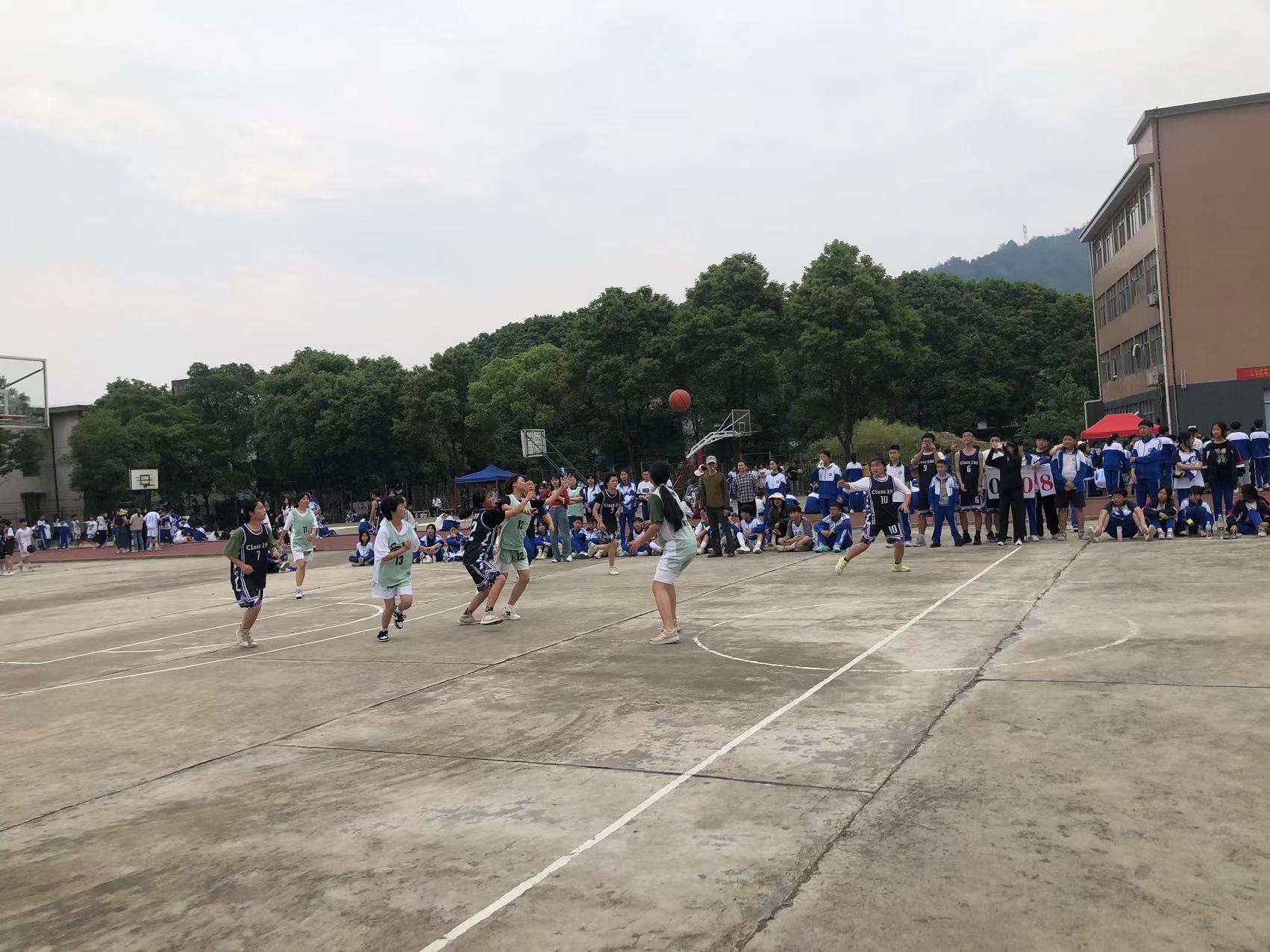 本次校园篮球赛以班级为单位进行,每班分男女组队,共40支队伍参加比赛。比赛分两个年级,采取循环赛、积分赛制。