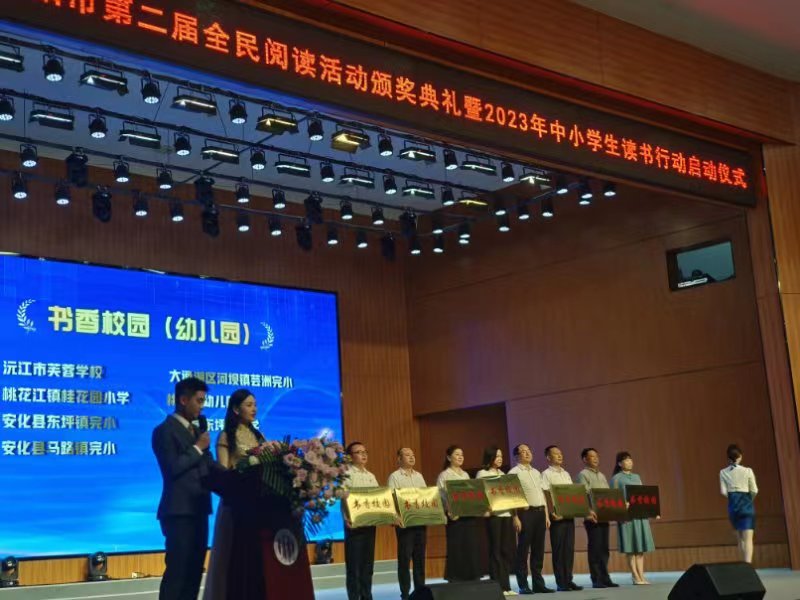 本网讯 5月30日,东坪镇中学党支部书记、校长刘志慧参加由益阳市教育局和益阳市新华书店联合举办的“益阳市第二届全民阅读活动颁奖典礼”,该校获得"市级书香校园"。