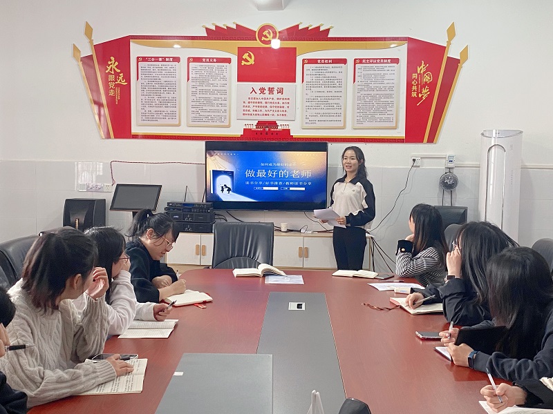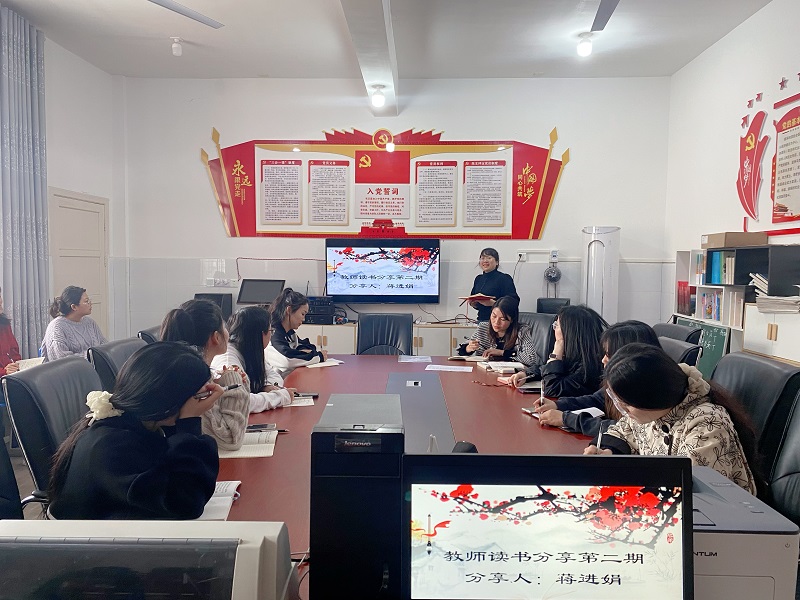 本网讯 4月9日中午,江南镇洞市完小“追梦”读书会开展第二期读书分享。 政教主任罗诗微分享了李镇西老师的《做最好的老师》,简要介绍了该书的作者,概述了本书的内容,并分享了书中精妙的部分。“什么才是最好的老师?”“最好的老师应该具有怎样的情怀?”罗主任结合自己的教学经历,谈了自己的体会和收获,并号召老师们要做最好的老师,成为每个教师的生活方式、工作常态和人生追求。办公室主任蒋进娟通过阅读《小学数学课程标准》分享了自己的阅读感悟。她结合自身的工作实际和同事的教学案例,从数学语言、创设情境、培养学生良好习惯等方面畅谈了自己阅读时的所思所想、所感所悟和所获。两位老师精彩的阅读分享使在座的老师们产生了深深的共鸣,一阵阵热烈的掌声给予了分享者最好的鼓励。 校长姚志军作总结发言,她充分肯定了老师们认真阅读的态度,激励老师们自觉养成读书好习惯,做幸福书香教师,共建书香校园。 (通讯员 李芬芳)