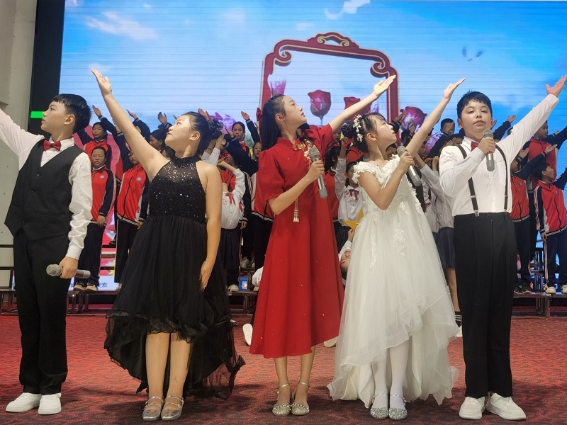 本网讯 9月29日,东华完小全体师生及家长代表欢聚一堂,举行“歌颂祖国 爱我中华”经典诵读比赛。活动分为低年级红歌演唱与中高年级经典诵读两个环节,由七位老师组成的评委组现场打分。 比赛中,同学们用稚嫩的歌喉、不同的诵读形式、训练有素的朗诵水平、富有感染力的表演设计,赢得了在场观众的阵阵掌声。全校二十个班逐一登场,《红红的太阳》《祖国祖国我爱你》《七律长征》《祖国赞歌》等一首首红歌,一篇篇经典诗文在礼堂中回荡,学生们在表演中尽情地抒发着对祖国的热爱,每个人身上都洋溢着满满的自豪感与自信心。 通过评委组评比,全校共有4个班获得一等奖,6个班获得二等奖;校长高飞为全体获奖班级颁发奖状。 初审初校:冷美婷