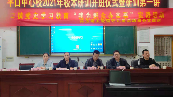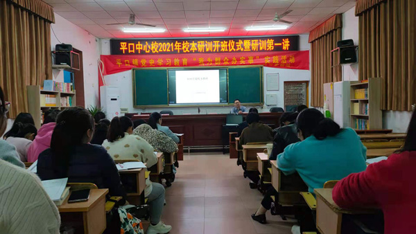本网讯 4月20日18:30分,平口镇中心学校在平口镇完小多媒体室举办2021年校本研训开班仪式暨研训第一讲,县教师发展中心副主任陈高峰、邓健,平口镇中心学校全体行政相关负责人共61人参加了开班仪式。 会议由平口镇中心学校办公室主任张石平主持。首先,由校长张花群致欢迎词。她对县教师发展中心两位领导的到来和县教师发展中心的无限支持表示感谢,她说:“今天,我们郑重其事地举办开班仪式,不是作秀给人看,而是要表明我们做好校本研训的坚定决心,我们要将校本研训做出实效,做出高度!” 接着,陈高峰发了言,并宣布培训活动正式启动。在发言中,陈高峰指出,参加今天仪式的都是平口镇中心学校的精英,希望各位要将中心学校的校本教研顶层设计转化为学校和教师的行动,确保研训落地,要结合本校实际,将校本研训做大做强;各校要在校本研训中不断反思、总结、提高,不断改进方式,探索出一套行之有效的模式,使研训更富有成效。 平口镇中心学校教导主任夏伟就校本研训作了发言。最后,邓健作了主题讲座。他从校本教研的含义、校本教研的意义、校本教研的基本形式和校本教研的实施路径等四个方面,深入浅出地阐述了“如何开展校本教研”这一主题。讲座中,邓健展示了自己的读书和研训笔记,让参会人员触动很大。大家纷纷表示,在今后的校本研训活动中,一定要学习这种勤奋、刻苦的钻研精神,在提升个人的素质和水平的同时,带领整个团队务实、高效地开展校本研训。(通讯员 张石平)
